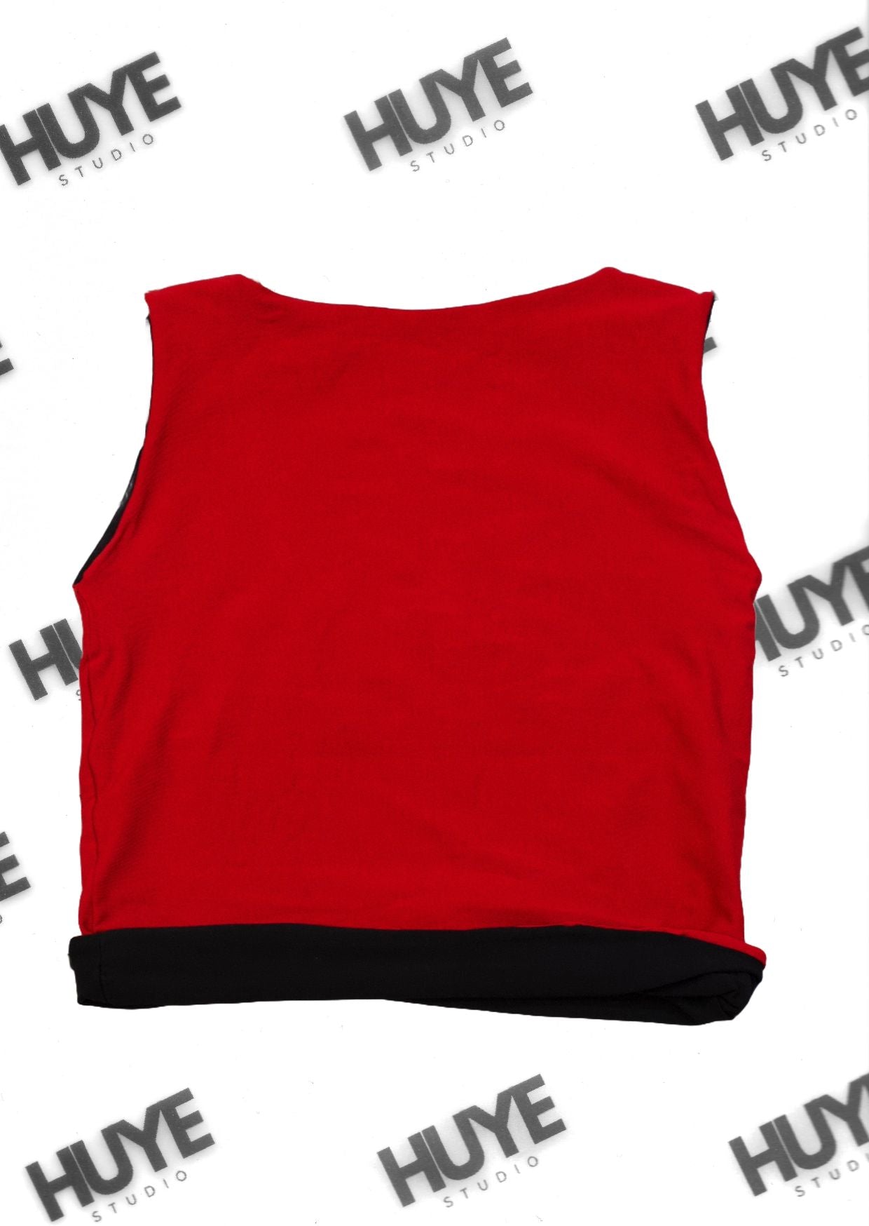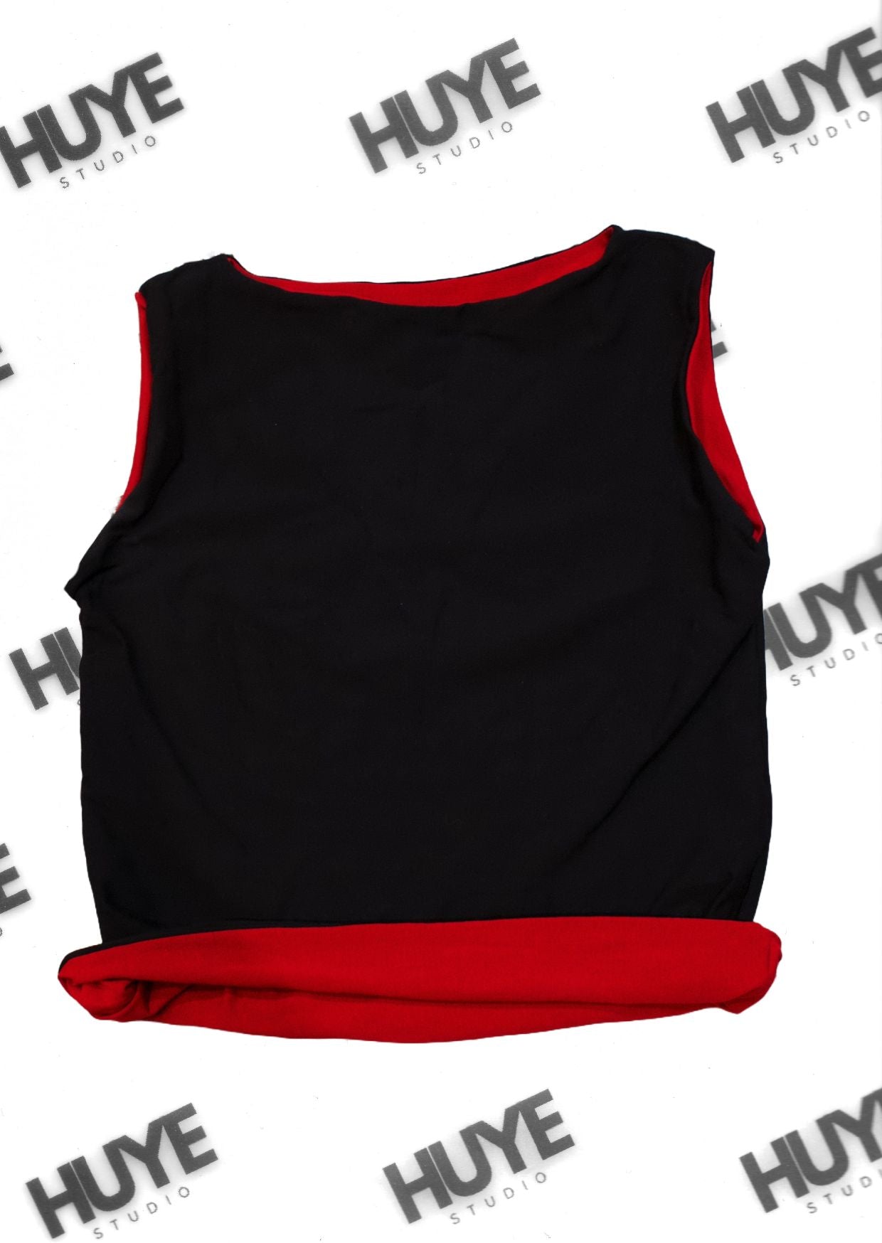 The Gemini Top. For the ones who change their mind. A reversible boat neck top crafted from soft organic cotton. Black on one side, red on the other. Two moods, one piece.